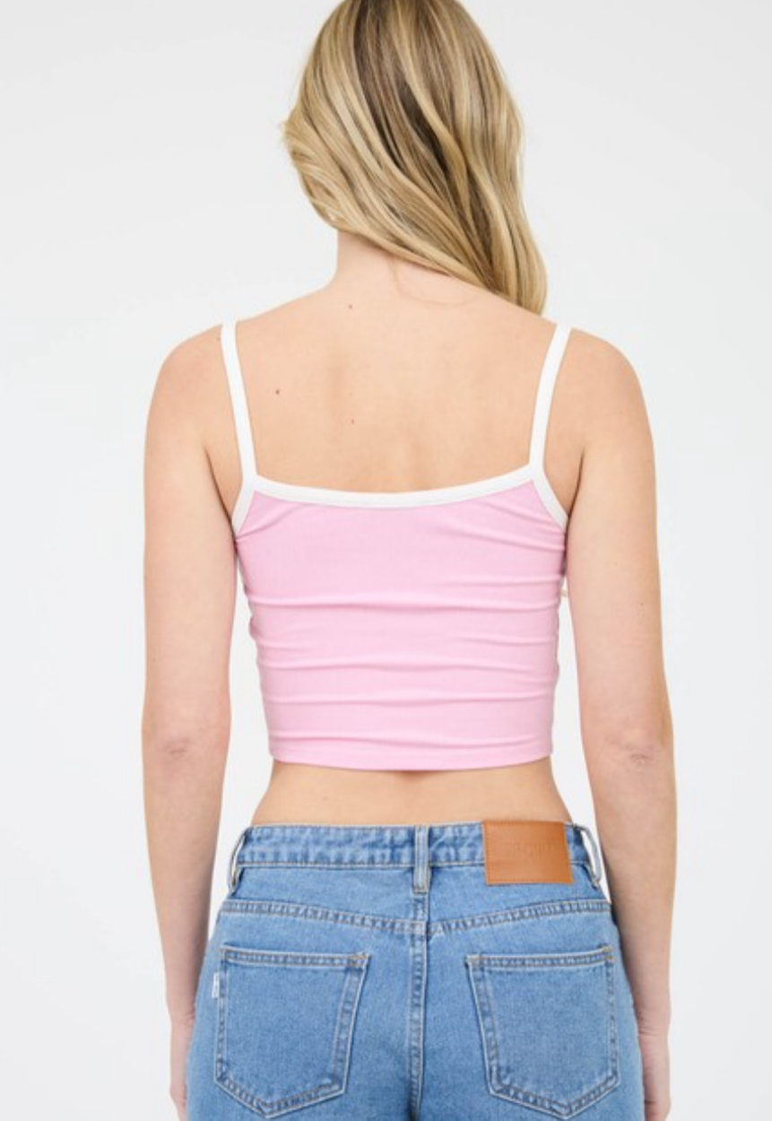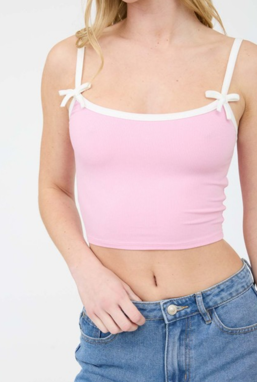 This little Cami is a knit light pink. It has adjustable straps and a little bow detail 🎀