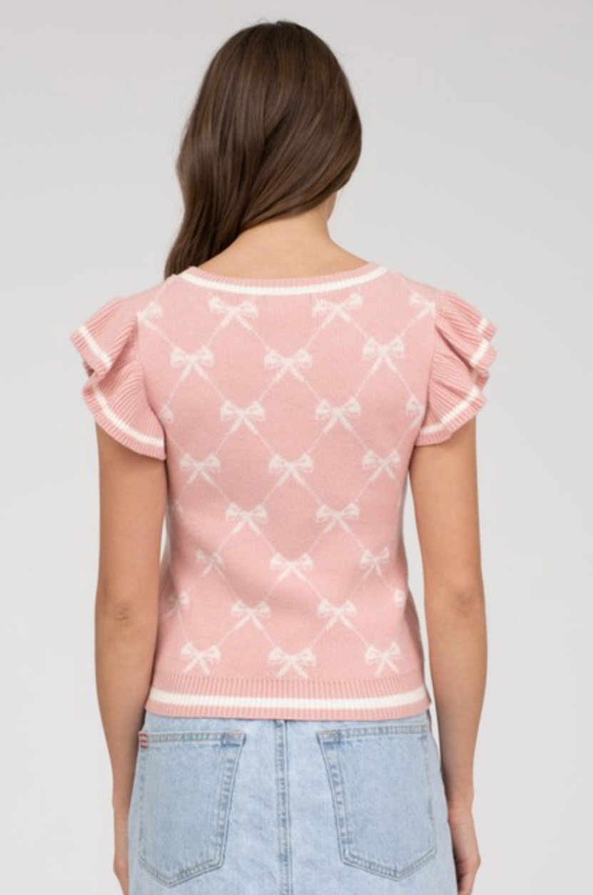 We love the bow trend 🎀 This little sweater tank is so soft, and we love the ruffle detail sleeve 🎀