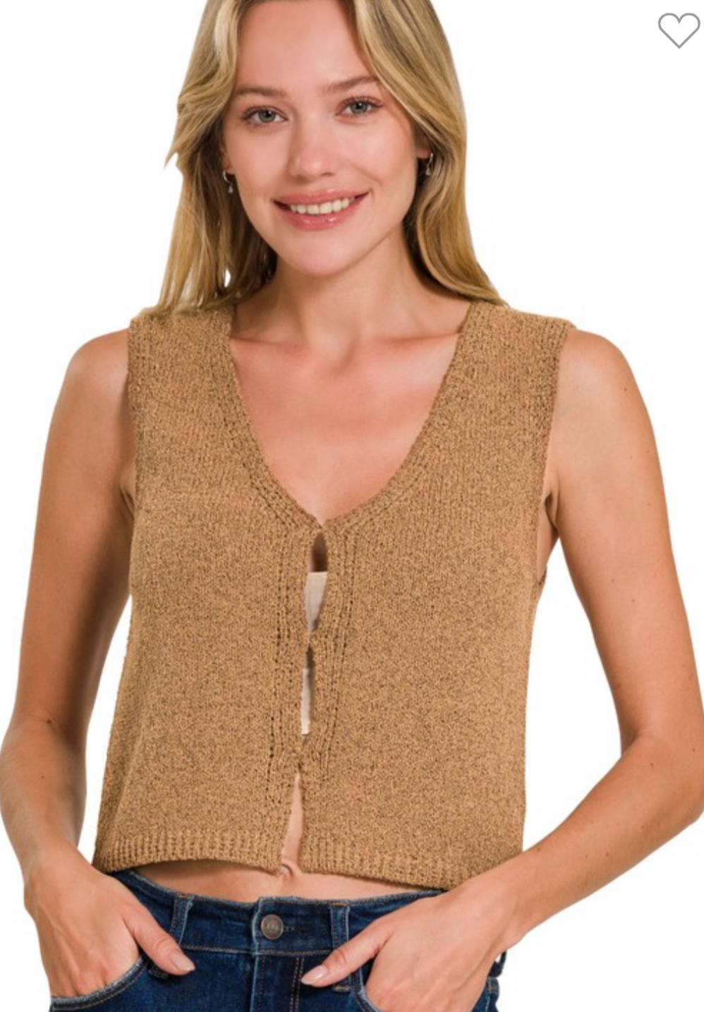 Hook & Eye Vest is a trendy layering piece. She's perfect for year round wear. We have it available in 3 colors 😘