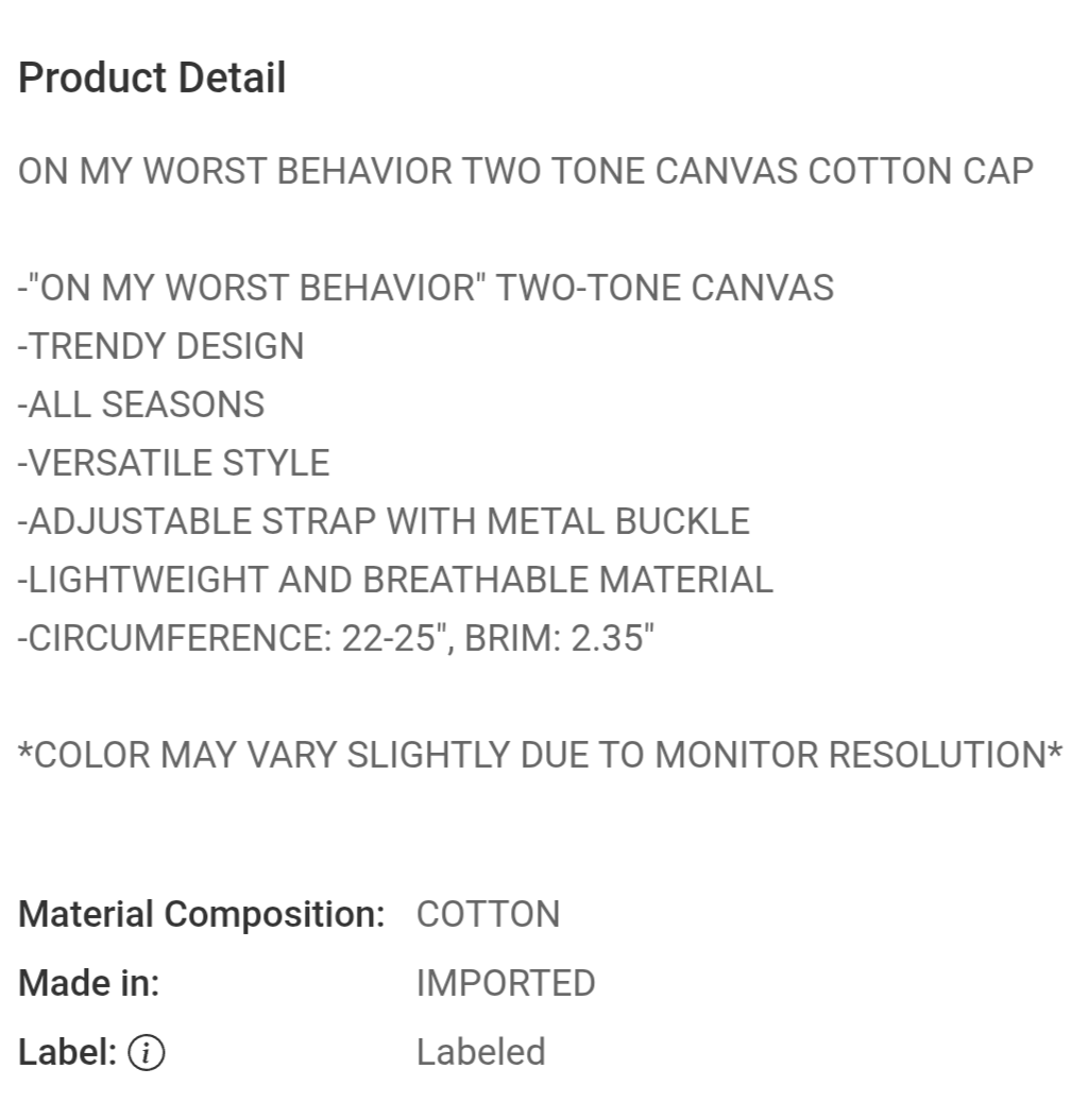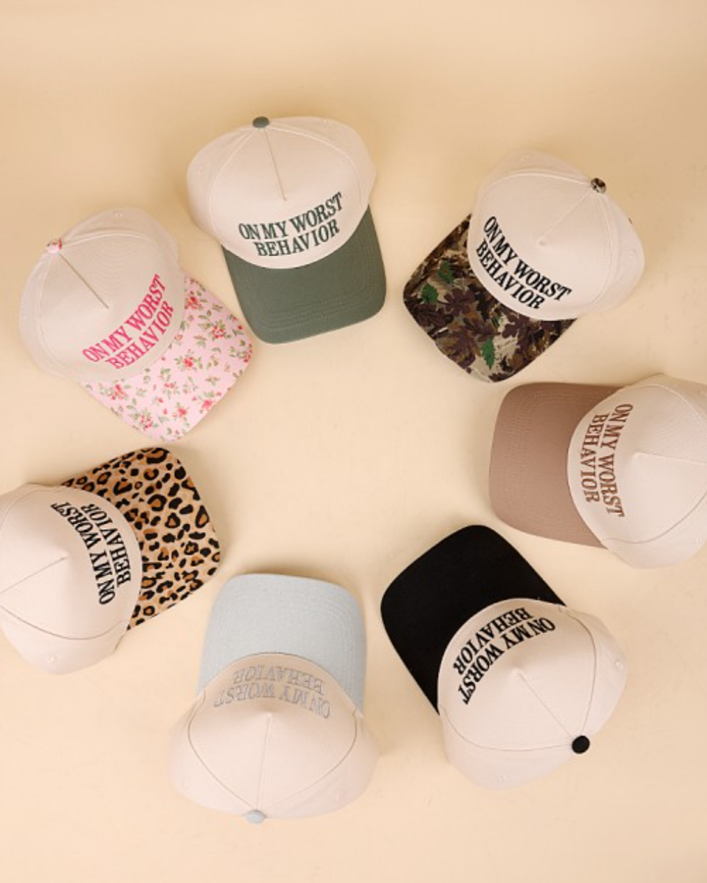 On My Worst Behavior canvas hat. Available in 3 color options.