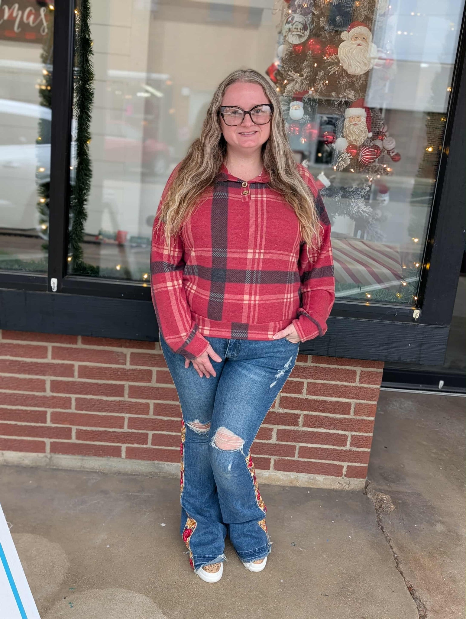 Pammy is a cozy plaid pop over. She's got front pockets, super soft, and the perfect color pallet for fall and winter. Made in America 🇺🇸Â