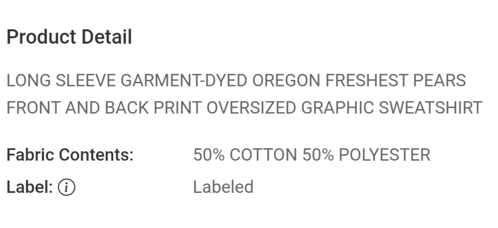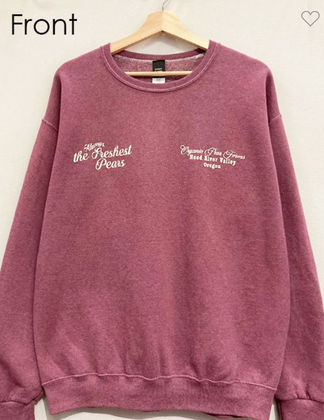 Graphics on the front and back celebrating Oregon pears 🍐 Oversized fit.