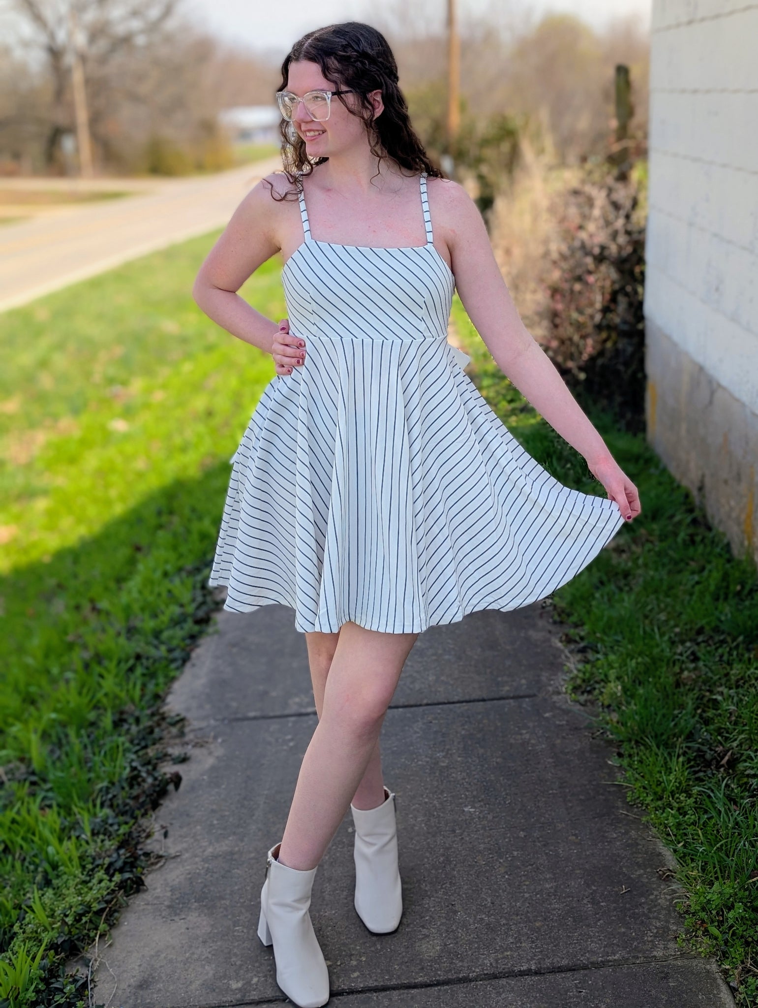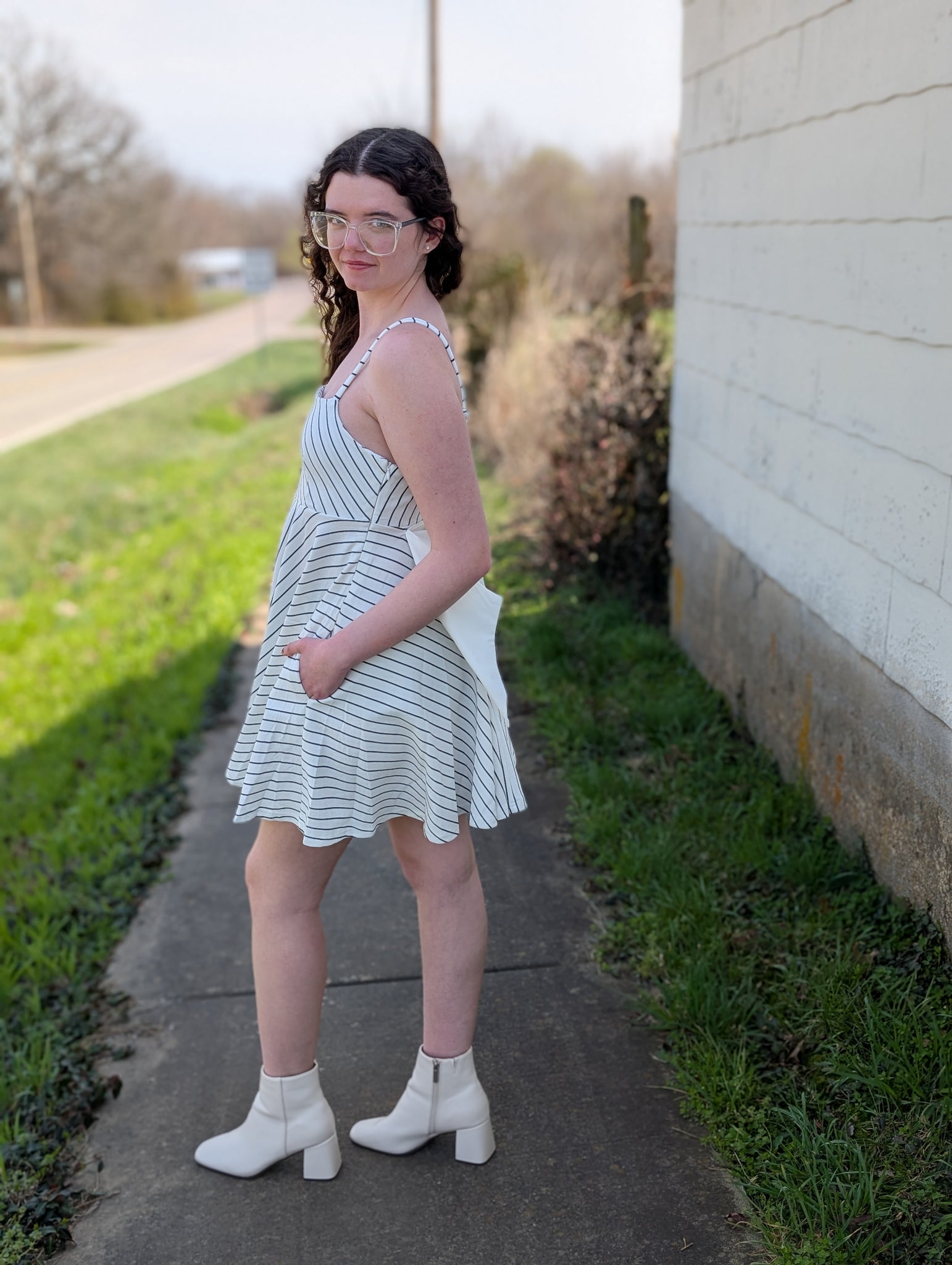 This dress is so fun! It features a large bow in the back and has pockets. Umgee brand.